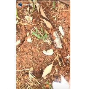 Bukan berwujud manusia, rupanya tamu yang mampir ke rumah Nadine adalah serombongan ulat bulu. Bukan cuma satu, ulat bulu yang tampak bergerombol itu terlihat berada di beberapa titik halaman rumah Nadine.