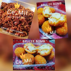 Tidak hanya Brulee Bomb, usaha yang ia beri nama Ce_Mil dengan logo ciri khas mahkota raja ini juga menyediakan menu sambal tempe kering, aneka kerupuk hingga kemplang kelas super.