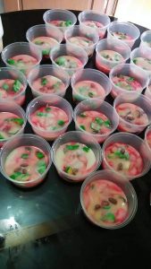 “Untuk pisang, saya biasanya pakai pisang tanduk, pisang raja, kadang juga pisang ambon. Warna hijau di adonan tepung saya pakai air daun suji dan pandan, gak dicampur dengan pewarna makanan. Jadi aman dikonsumsi anak-anak. Untuk kuahnya saya pakai campuran santan dan susu, gulanya juga asli, gak pakai pemanis,” ungkap perempuan yang memiliki 3 orang anak ini.