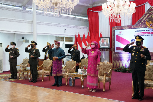 Pelaksanaan Upacara Peringatan Hari Lahir Pancasila dilakukan secara virtual, mengingat situasi pandemi Covid-19 masih berlangsung.