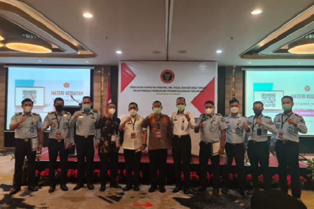 MAKASSAR – Kepala Divisi Keimigrasian Kanwil Kemenkumham Sulawesi Selatan (Sulsel) Dodi Karnida bersama para pejabat imigrasi Divisi Keimigrasian, Kanim Makassar, Parepare, Palopo dan Rudenim Makassar mengikuti kegiatan penguatan kapasitas dan kompetensi personel TNI/Polri dan instasi terkait dalam mendukung penanggulangan terorisme di wilayah Sulsel.
