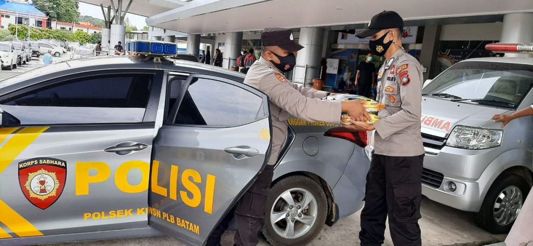 BATAM – Polsek KKP Polresta Barelang yang dipimpin Kapolsek AKP Budi Hartono melakukan bakti sosial (baksos) pada masyarakat, dalam hal ini sopir taksi dan porter Pelabuhan Domestik Sekupang, Batam, Minggu (1/8/21).