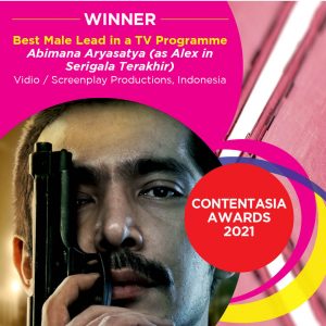 JAKARTA – Vidio Original Series Serigala Terakhir produksi Screenplay Films berhasil memenangkan 2 penghargaan di ajang ContentAsia Awards 2021. Abimana Aryasatya sang pemeran utama meraih predikat Best Male Lead in a TV Programme. Sementara sutradara Tommy Dewo memenangkan kategori Best Director of a Scripted TV Programme.