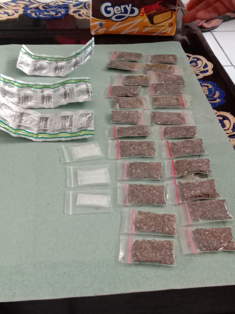Penyelundupan diduga narkoba itu berupa 24 sachet tembakau diduga tembakau  “Gorilla”, 3 sachet kristal putih diduga sabu, dan tramadol 3 kaplet yang dimasukkan ke dalam makanan ringan berupa roti dan biskuit.
