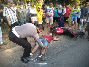 SIMALUNGUN – Tabrak mobil Toyota Kijang di jalan umum Perdagangan- Sungai Langge, desa Bah Lias, kecamatan Bandar, kabupaten Simalungun, pengendara motor Honda CBR 150, Jefri P Sidabutar (21), warga Ajibata-Toba, tewas tergeletak di pinggir jalan.