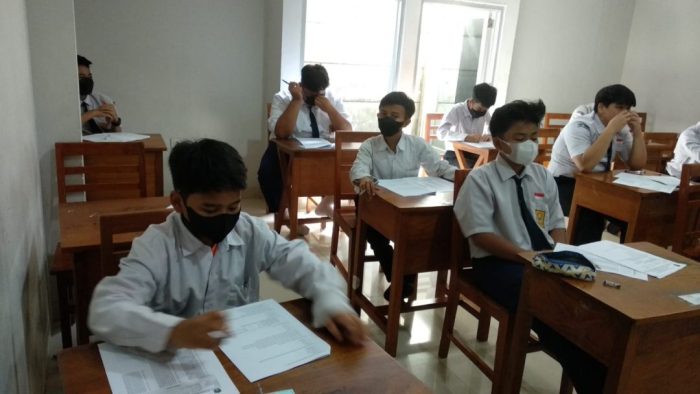 Saat ujian siswa wajib menerapkan protokol kesehatan secara ketat dengan jumlah siswa juga dibatasi dalam satu ruangan kelas. (Boy Iskandar)