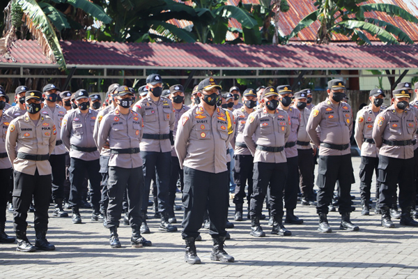 Usai apel kesiapan, personel langsung bergerak menuju lokasi pengamanan yang sudah ditentukan. (febidjanto)