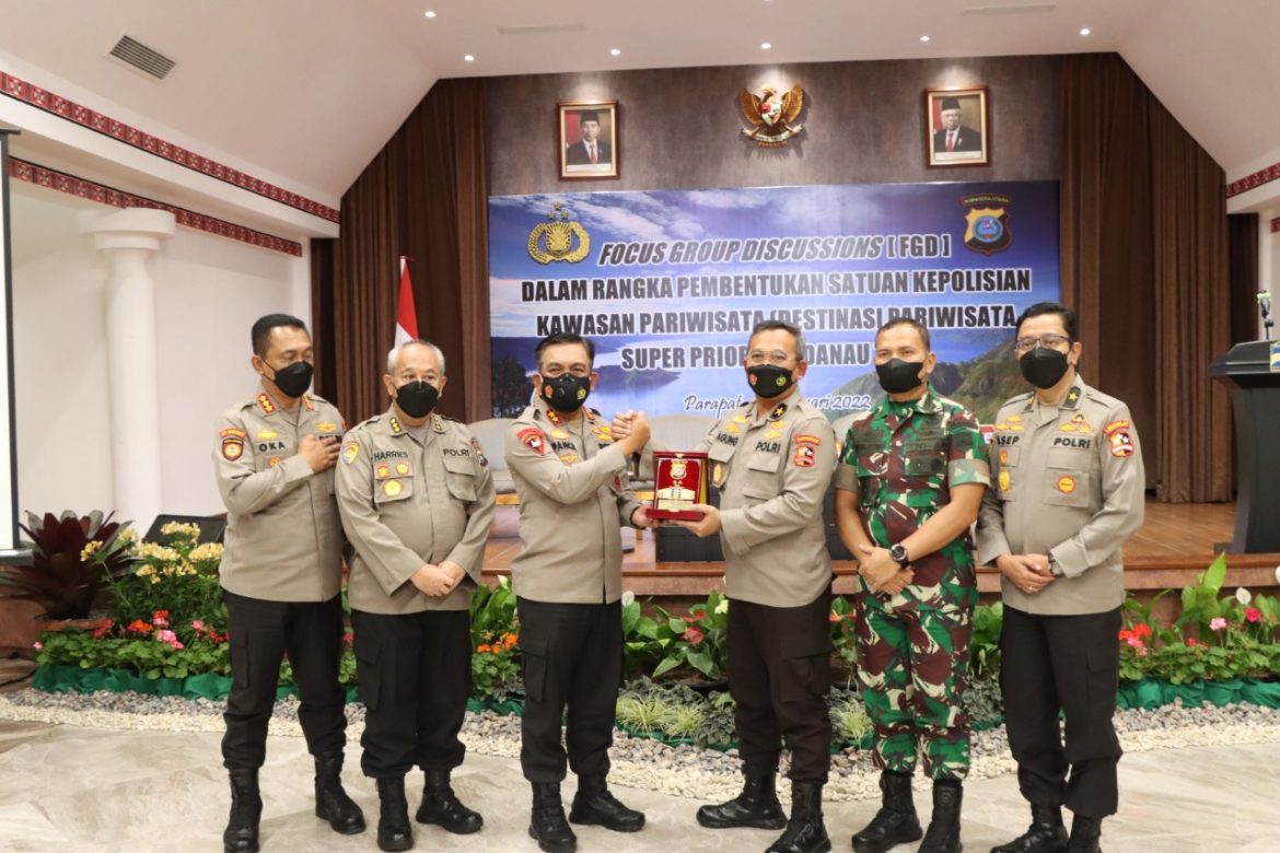 Informasi yang diperoleh, Minggu (30/1/22), dalam pertemuan bertajuk Focus Grup Discussions (FGD) dibahas pembentukan satuan kepolisian kawasan pariwisata (destinasi pariwisata super prioritas Danau Toba).