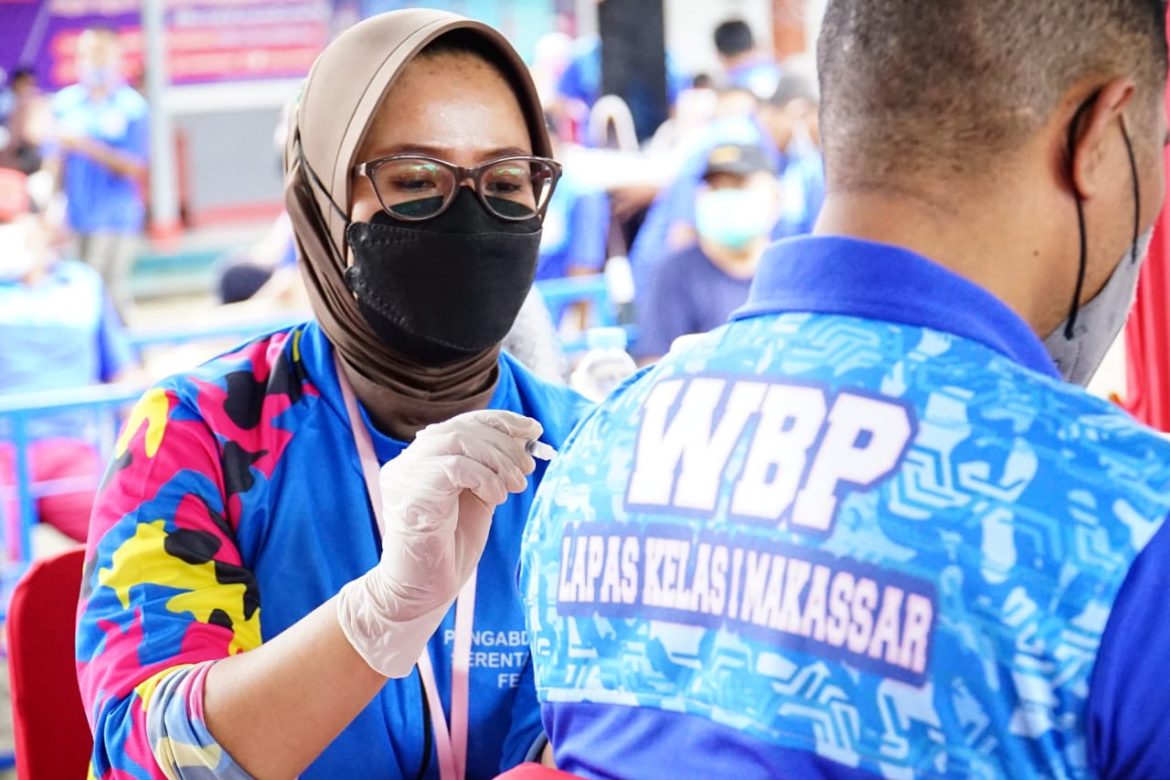 Khusus Lapas Makassar sudah mencapai 98,48%. Pertanggal 3 Februari 2022 dari total 923 WBP, yang telah divaksinasi dosis pertama sebanyak 7 orang dan dosis lengkap (1 dan 2) sebanyak 902 orang.