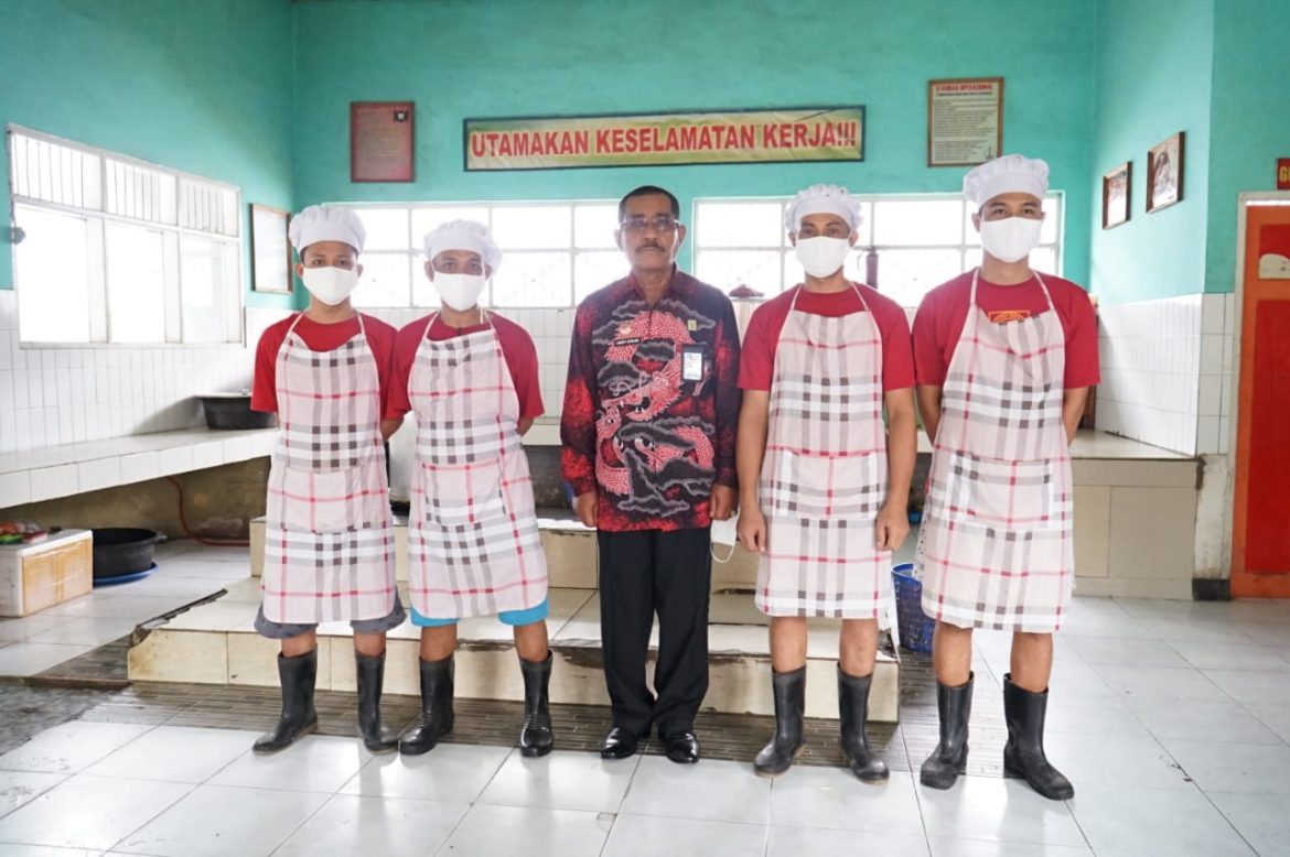 Setelah berbincang dari hati ke hati dengan warga binaan, Kakanwil melihat kondisi dapur dan makanan warga binaan.