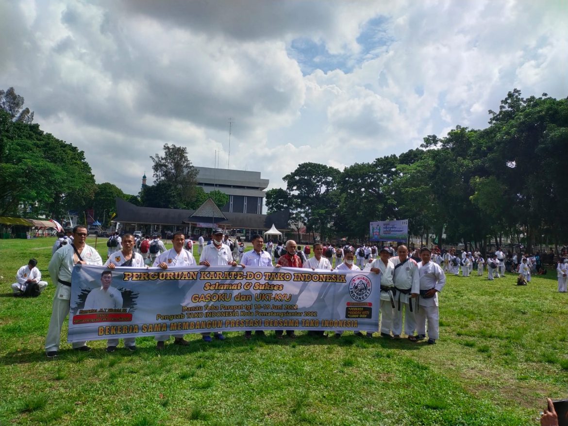 PEMATANGSIANTAR – Sebanyak 125 karateka perguruan bela diri Tangan Kosong (TAKO) Indonesia, pengurus cabang (Pengcab) Pematangsiantar mengikuti gasukhu atau latihan bersama dan Ujian Kenaikan Tingkat (UKT)-Kyu di kawasan wisata Parapat, Danau Toba, Sumut, 18-19 Juni 2022.