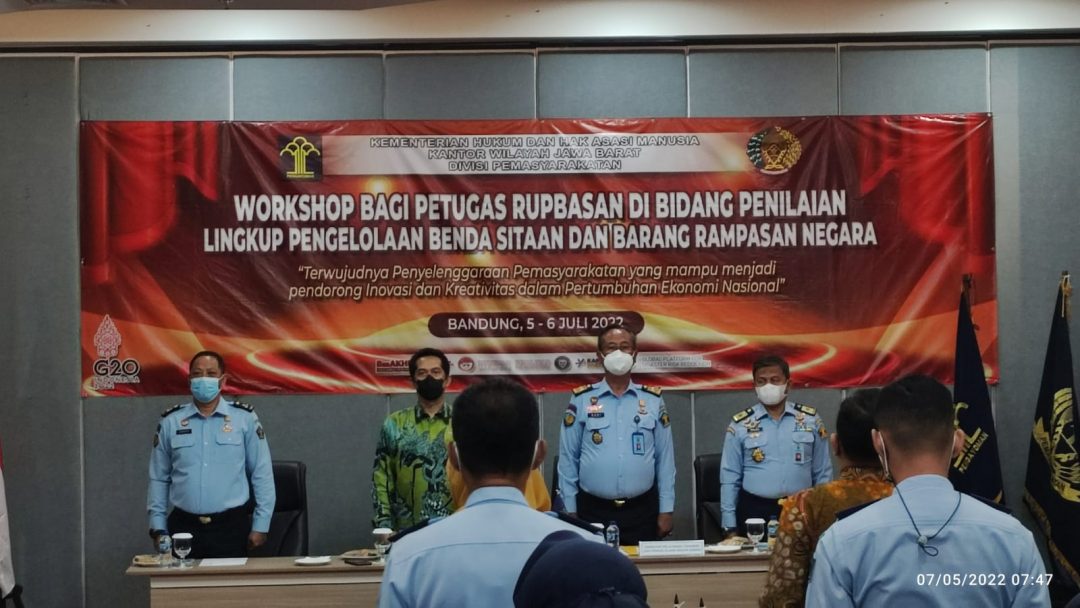 BANDUNG – Direktur Pelayanan Tahanan dan Pengelolaan Benda Sitaan dan Barang Rampasan Negara (Basan dan Baran) Direktorat Jenderal Pemasyarakatan (DitjenPAS) Budi Sarwono membuka secara resmi Workshop Penilaian Pengelolaan Basan dan Baran bagi Petugas Rupbasan (Rumah Tempat Penyimpanan Benda Sitaan dan Barang Rampasan Negara) se- Indonesia Tahun 2022, di Kota Bandung, Selasa (5/7/22).