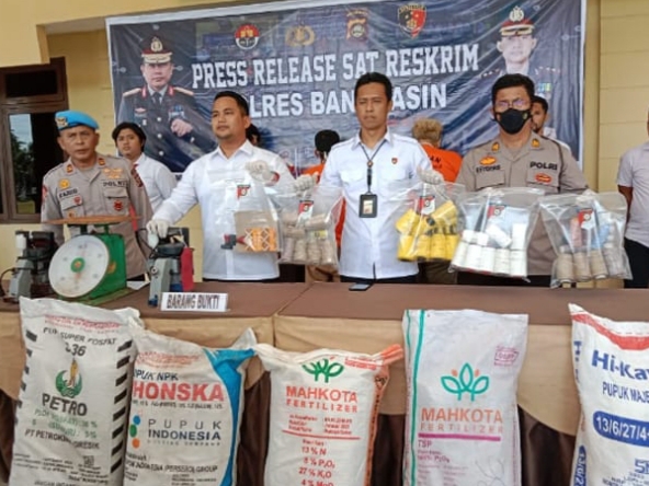 BANYUASIN – Satuan Reserse Kriminal (Satreskrim) Polres Banyuasin, menggerebek tempat produksi pupuk oplosan di Desa Santan Sari, Kecamatan Sembawa, Kabupaten Banyuasin, Sumsel.