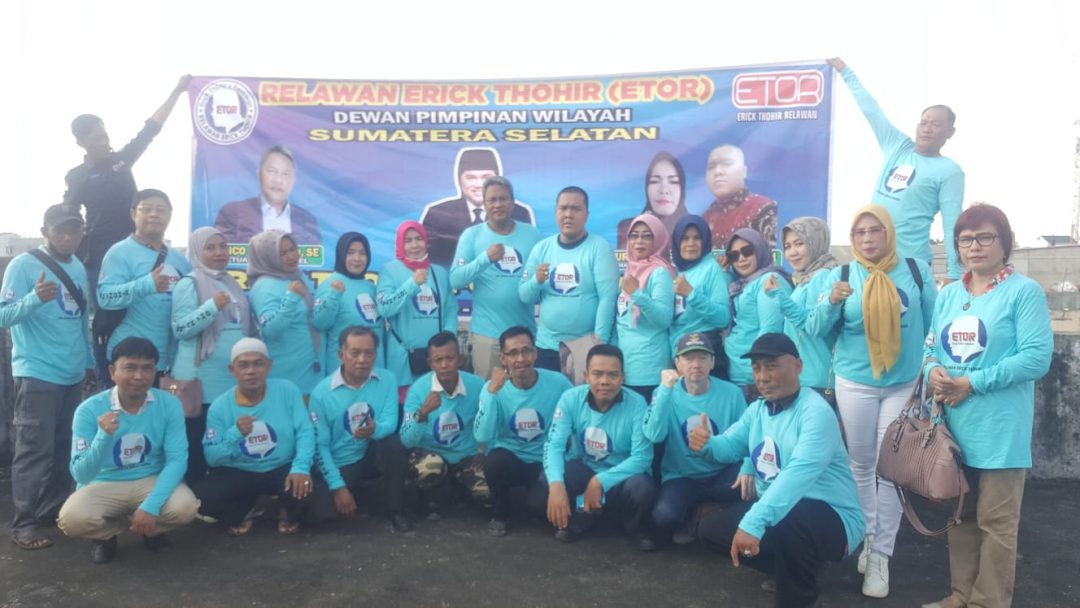 PALEMBANG – Dalam waktu dekat Relawan Erick Thohir (ETOR) akan hadir di 17 kabupaten dan kota di Sumatera Selatan (Sumsel).
