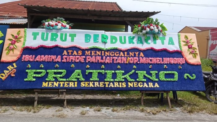 Diantara yang menyampaikan ucapan belasungkawa mengirimkan papan bunga atas meninggalnya Amine Sinde Panjaitan (56), ibunda Jefri Gultom yakni Panglima TNI, Kapolri, Menseneg, Menteri Luhut Binsar Panjaitan dan sejumlah duta besar (dubes).