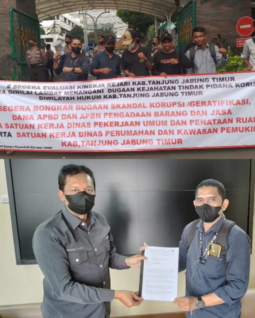 “Ada beberapa poin yang kita suarakan di depan Kejagung, tentang persoalan di Provinsi Jambi yang berbau KKN, termasuk lima laporan saudara Erfan ke Kejati Jambi, tiga diteruskan ke Kejari Tanjabtimur, salah satunya soal Bimtek Apdesi Tanjabtim pada tahun 2021 lalu,” tuturnya, Jumat (7/10/22).