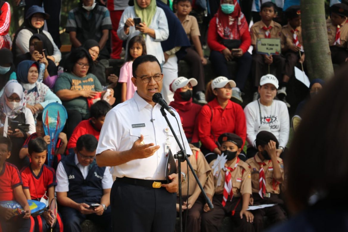 JAKARTA – Gubernur DKI Jakarta Anies Baswedan meresmikan 100 Taman Maju Bersama (TMB) di Taman Maju Bersama Delonix, Kelurahan Pekayon, Kecamatan Pasar Rebo, Jakarta Timur, Rabu (12/10/22).