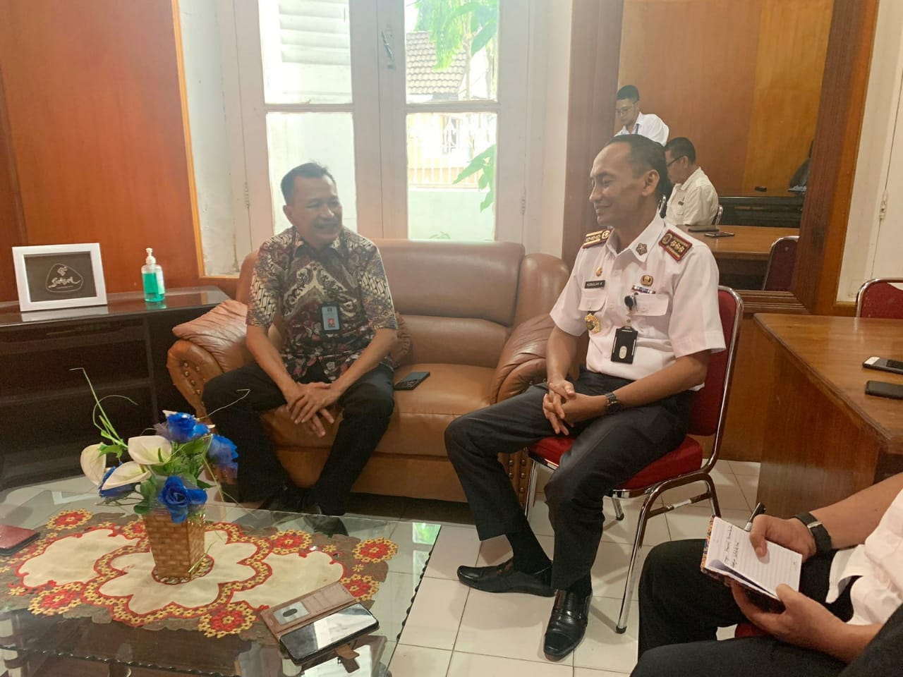Keduanya disambut langsung oleh Kepala Dinas, Hizbullah Kamaruddin didampingi jajaran.