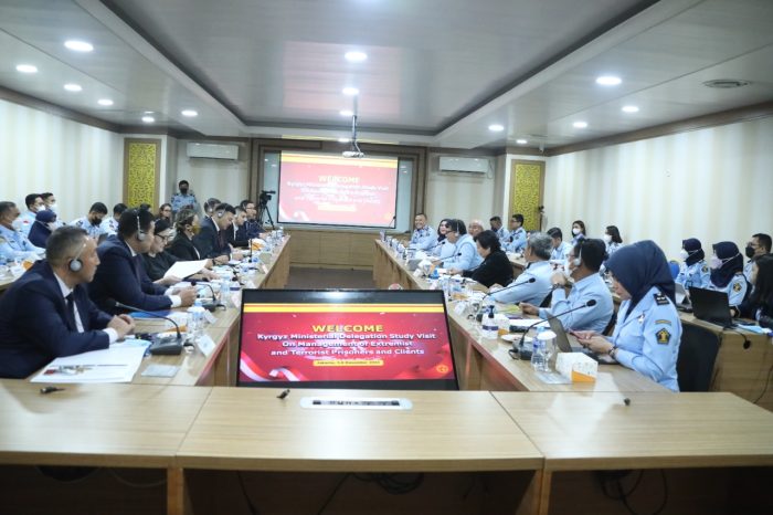 JAKARTA – Direktorat Jenderal Pemasyarakatan (Ditjenpas) menerima kunjungan studi visit delegasi Kementerian Kehakiman Republik Kirgizstan, Senin (5/12/22).