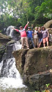 Berikutnya jalan kaki sejauh 100 meter dengan meniti anak tangga dan dilanjutkan menelusuri puluhan bebatuan yang tersebar di lokasi ini dan suara air gemericik menyambut kedatangan wisatawan.