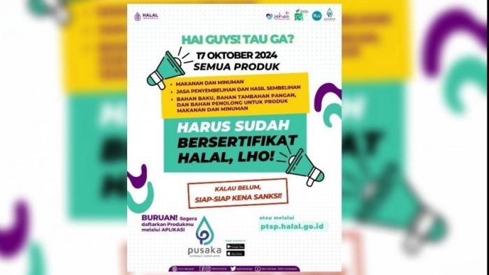 “Karenanya, sebelum kewajiban sertifikasi halal tersebut diterapkan, kami mengimbau seluruh pelaku usaha untuk segera mengurus sertifikat halal produknya,” imbuh Aqil.
