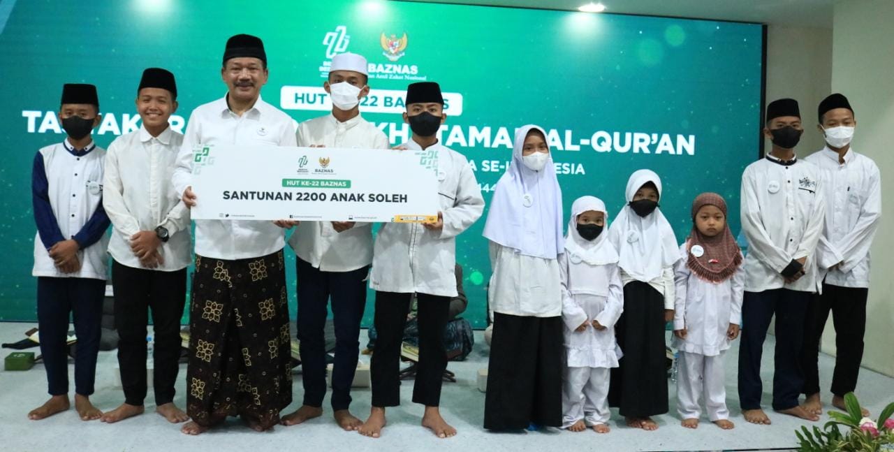 JAKARTA – Badan Amil Zakat Nasional (BAZNAS) memberikan santunan kepada 2.200 anak yatim dan dhuafa se-Indonesia pada puncak peringatan HUT BAZNAS RI ke-22.