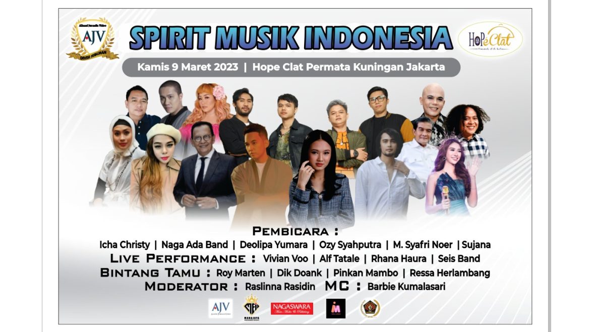 “Dalam rangka Hari Musik Nasional kami (AJV) menggelar diskusi musik sebagai bentuk kepedulian terhadap musik di Indonesia,” katanya, Kamis (9/3/23).