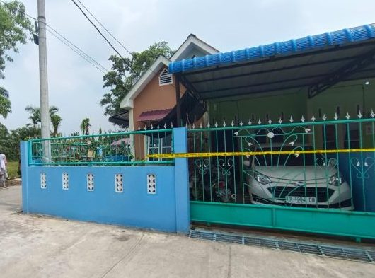 Korban dan anak lakinya berusia 13 tahun tewas di rumahnya, Komplek Perumahan Mutiara Landbouw, Dusun V, Desa Bandar, Kecamatan Bandar, Selasa (18/4/23).