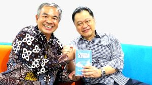 Dr Aqua Dwipayana dan Ventje Suardana saat menunjukkan buku “Dahsyatnya Silaturahim Bersih Hati dan Bersih Pikiran” sesaat setelah diluncurkan di Graha Pangeran Surabaya pada 10 November 2018.