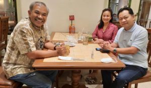 Ventje Suardana dan istri Heny Ventje menjamu Dr Aqua Dwipayana di salah satu resto di Surabaya seusai pemakaman Rudy Suardana, sebelum meninggalkan Surabaya untuk kembali ke Jakarta.