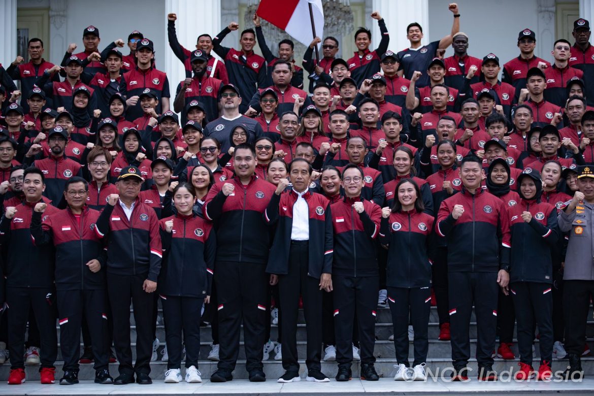 JAKARTA – Presiden Republik Indonesia Joko Widodo secara resmi melepas tim Indonesia ke SEA Games 2023 Kamboja di Halaman Depan Istana Merdeka, Selasa (2/5).