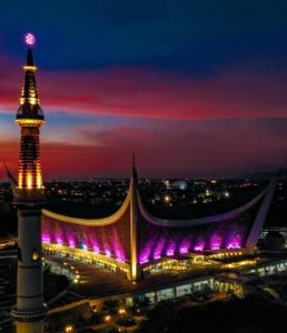 Pada malam hari, masjid ini tampak lebih megah dan mewah karena hiasan lampunya yang menyala.