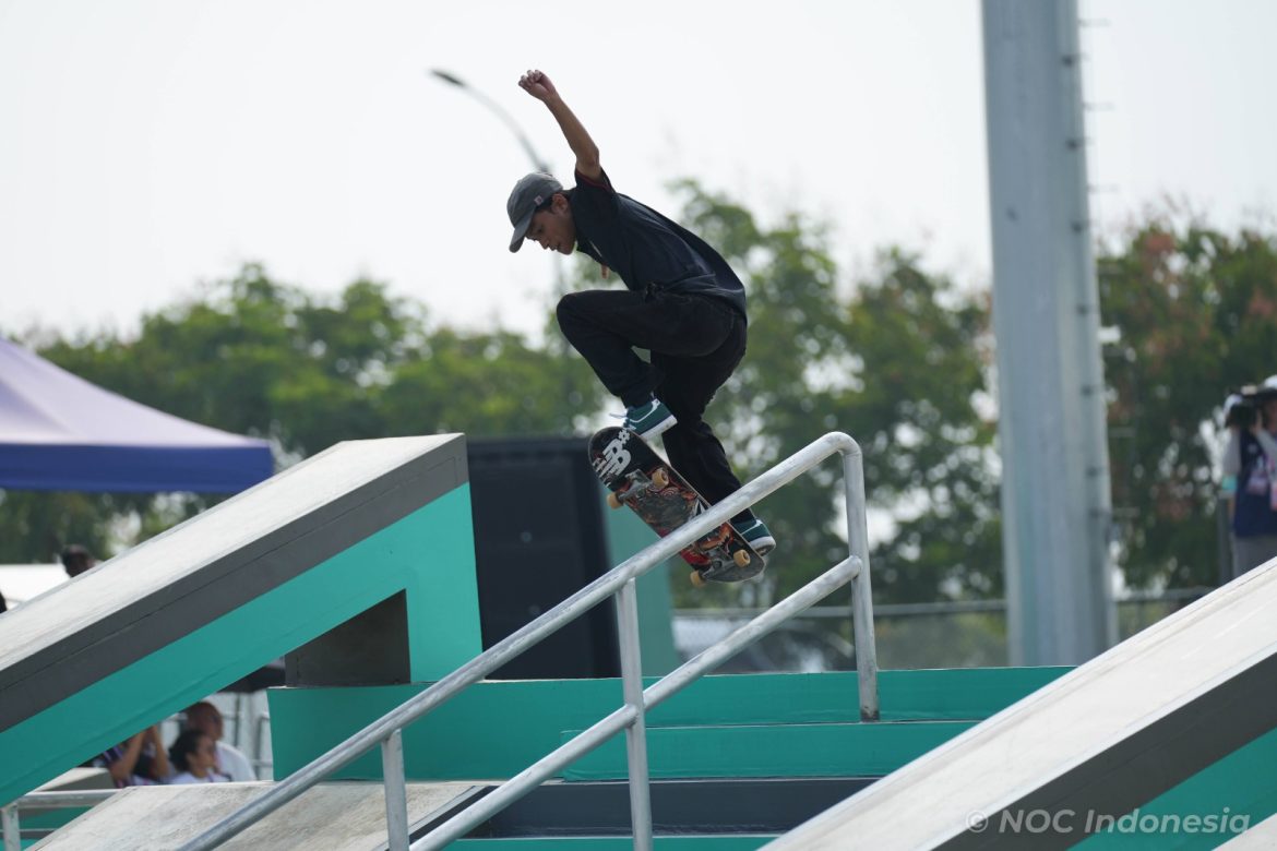 Selain Sanggoe, ada juga skateboarder Indonesia lainnya yang tampil di nomor men’s street yakni Basral Graito Hutomo.