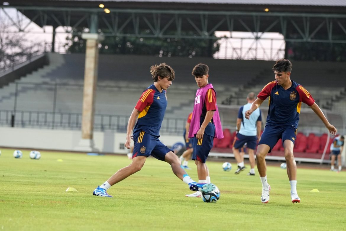 SOLO – Timnas Spanyol U-17 memastikan lolos ke babak knockout Piala Dunia U-17 2023. Spanyol menduduki puncak klasemen sekaligus melaju ke 16 besar setelah menang 1-0 atas Mali U-17 di Stadion Manahan, Solo, Senin (13/11/23) malam hari WIB.