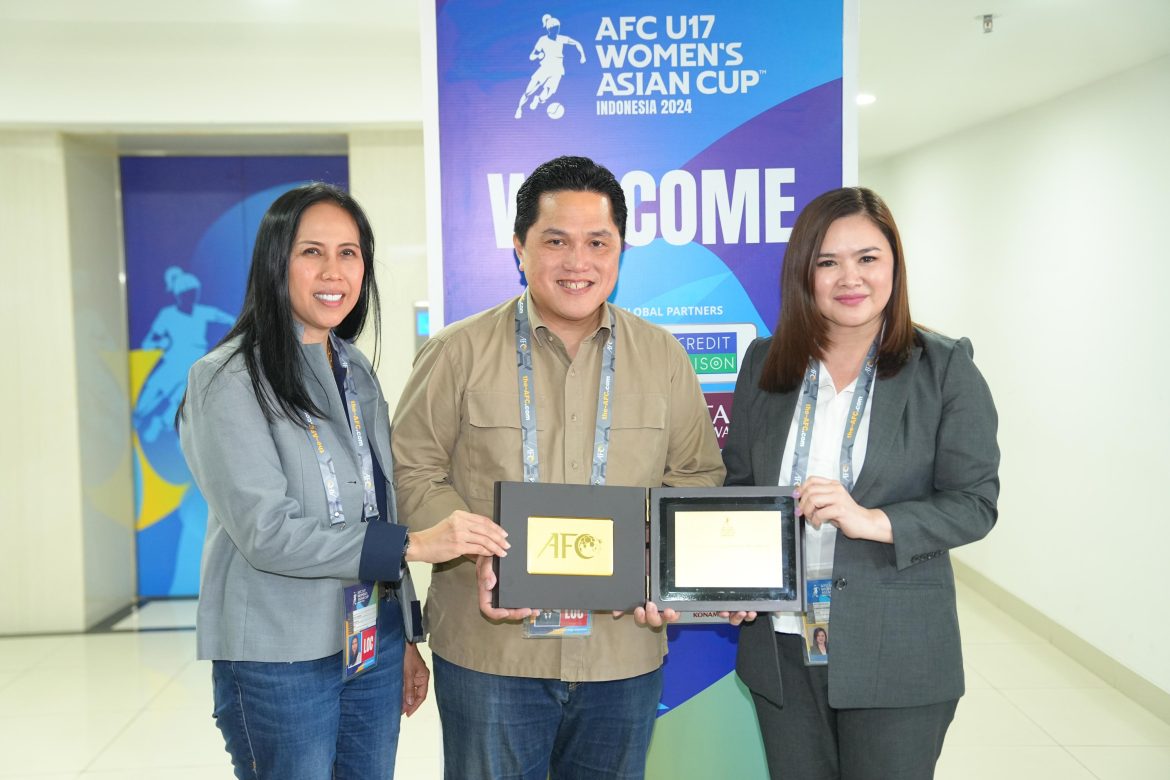 DENPASAR – Ketua Umum PSSI Erick Thohir memberi semangat langsung pada timnas U-17 putri yang sedang melakoni laga Piala Asia U-17 di Bali.