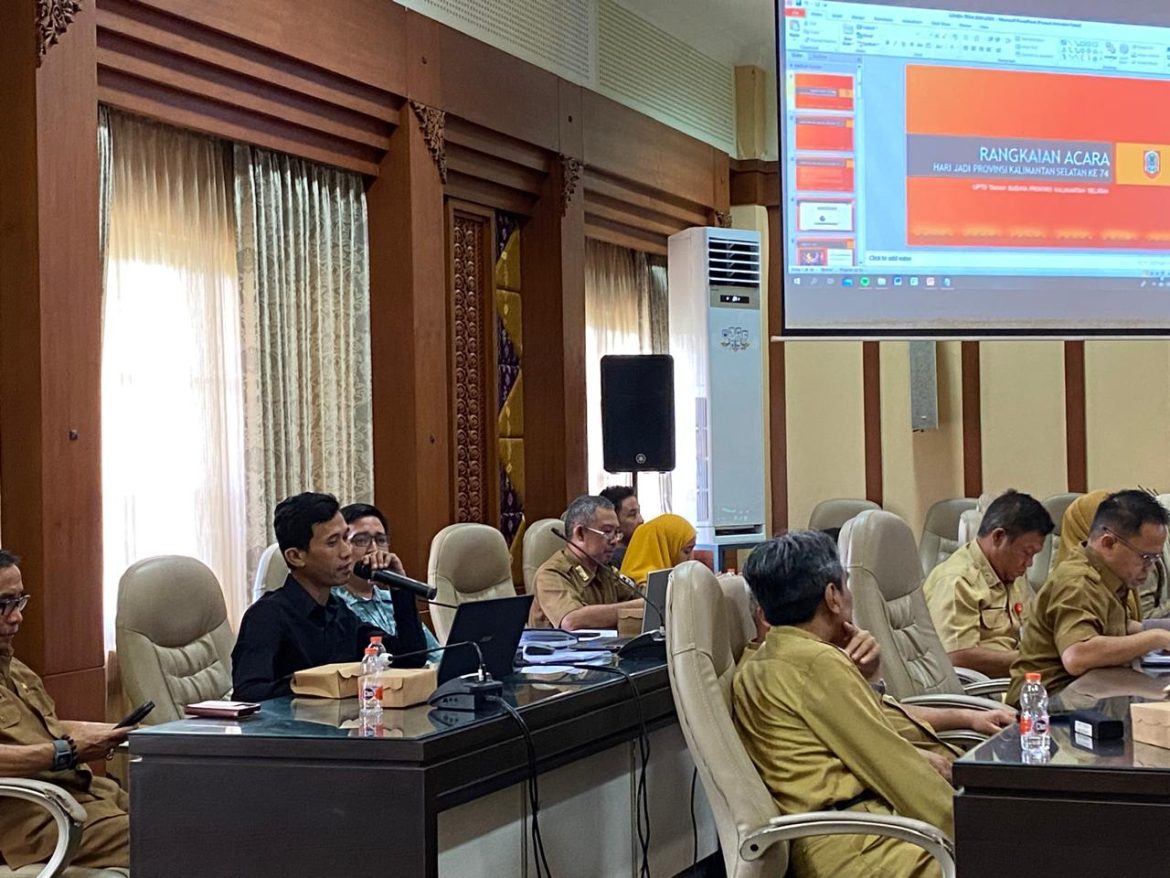 BANJARBARU – Pemprov Kalimantan Selatan (Kalsel) menggelar rapat koordinasi peringatan hari ulang tahun (HUT) ke 74 di ruang rapat Aberani Sulaiman, Banjarbaru, Selasa (21/5/24).