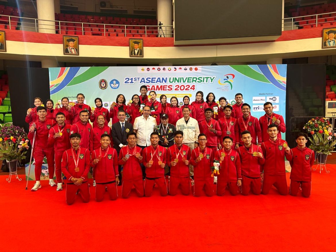 MALANG – Karate Kontingen Indonesia berhasil meraih sukses besar menjadi juara umum cabang olahraga karate di 21st ASEAN University Games 2024 Surabaya-Malang.