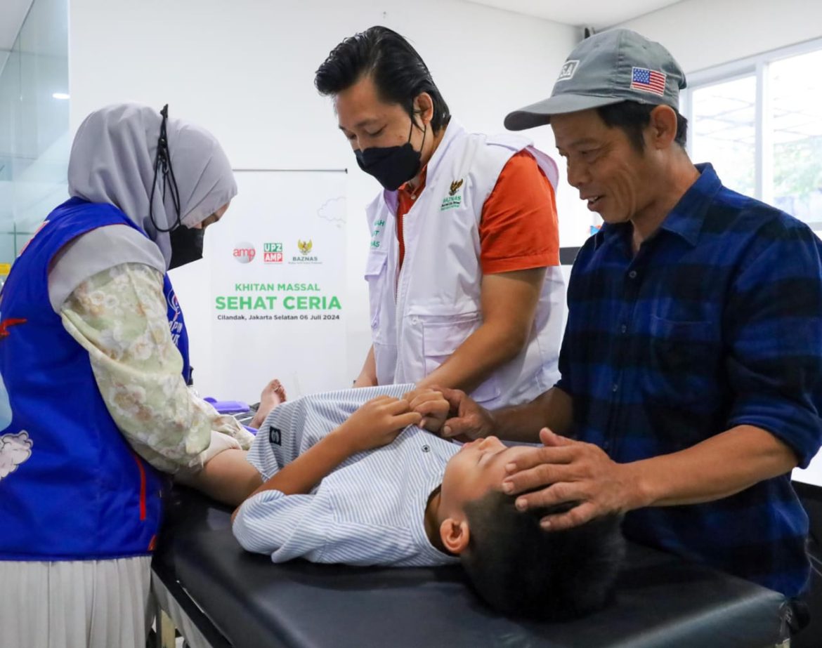 JAKARTA – Badan Amil Zakat Nasional (BAZNAS) Pusat bersama PT Asia Media Prisma (AMP) menggelar Khitan Massal Gratis Sehat Ceria untuk 50 anak keluarga dhuafa yang diselenggarakan di Kantor Grha AMP Cilandak, Jakarta Selatan, Sabtu (6/6/24).
