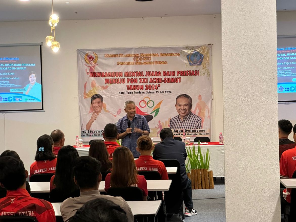 Sharing dari Dr Aqua Dwipayana yang bertajuk “Membangun Mental Juara Meraih Prestasi Menuju PON XXI” itu digelar Selasa 23 Juli 2024 siang di Hotel Yama Tondano, Minahasa.