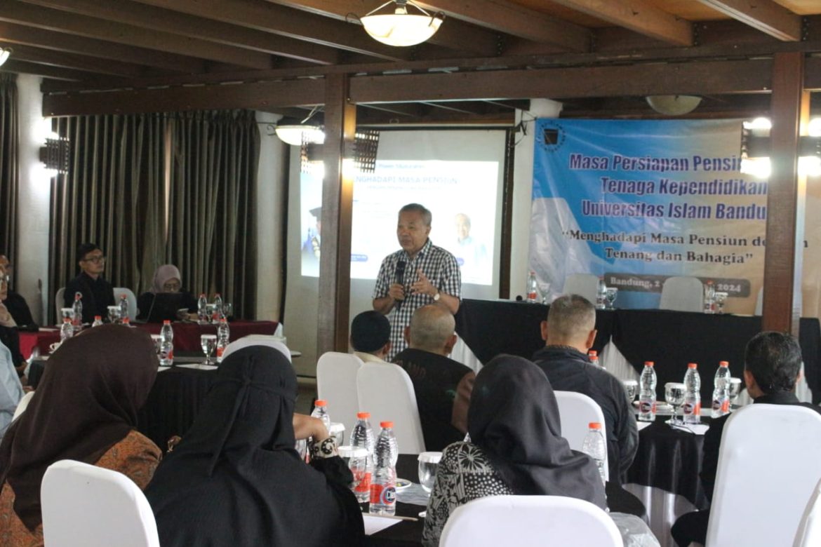 Pada Jumat 2 Agustus 2024 pagi, pria dengan jejaring pertemanan sangat luas tersebut berbicara kepada para tenaga kependidikan di lingkungan Unisba yang segera menghadapi masa purnakerja atau pensiun dari kepala bagian, kepala seksi, dan staf administrasi.