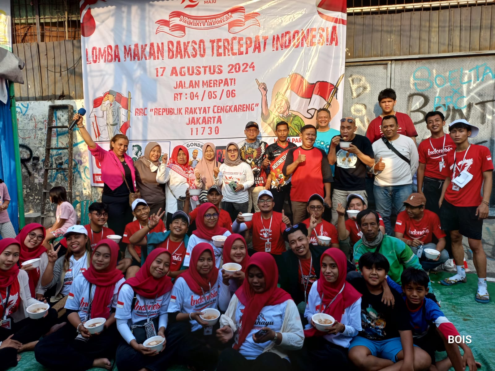 Dalam rangka menyambut HUT RI, warga masyarakat Jakarta Barat, Kelurahan Cengkareng Barat, RW 6 RT 5, 4, dan 6 menyelenggarakan “Lomba Makan Bakso Tercepat Indonesia”.
