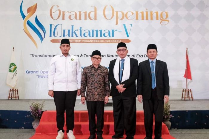 JAKARTA – Menteri Koordinator Bidang Pemberdayaan Masyarakat (Menko PM) Abdul Muhaimin Iskandar membuka Muktamar V dan Halaqoh BEM Pesantren se-Indonesia di GOR Pesantren Darunnajah, Jakarta Selatan.